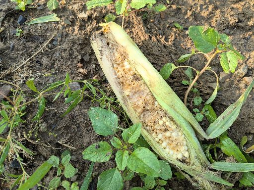 他にもピーマンはイノシシに倒され早期終了、ナスも枝が折られていて、再生はきつそうです。中でも白ナスは良い感じだったのですが食べつくされました。