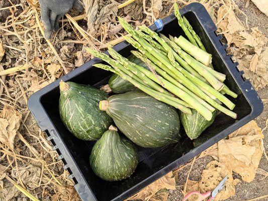 かぼちゃのロロンという品種です。ラグビーボールの形をしているのが特徴で、味わいはやさしく舌触りがいいとのことです。
